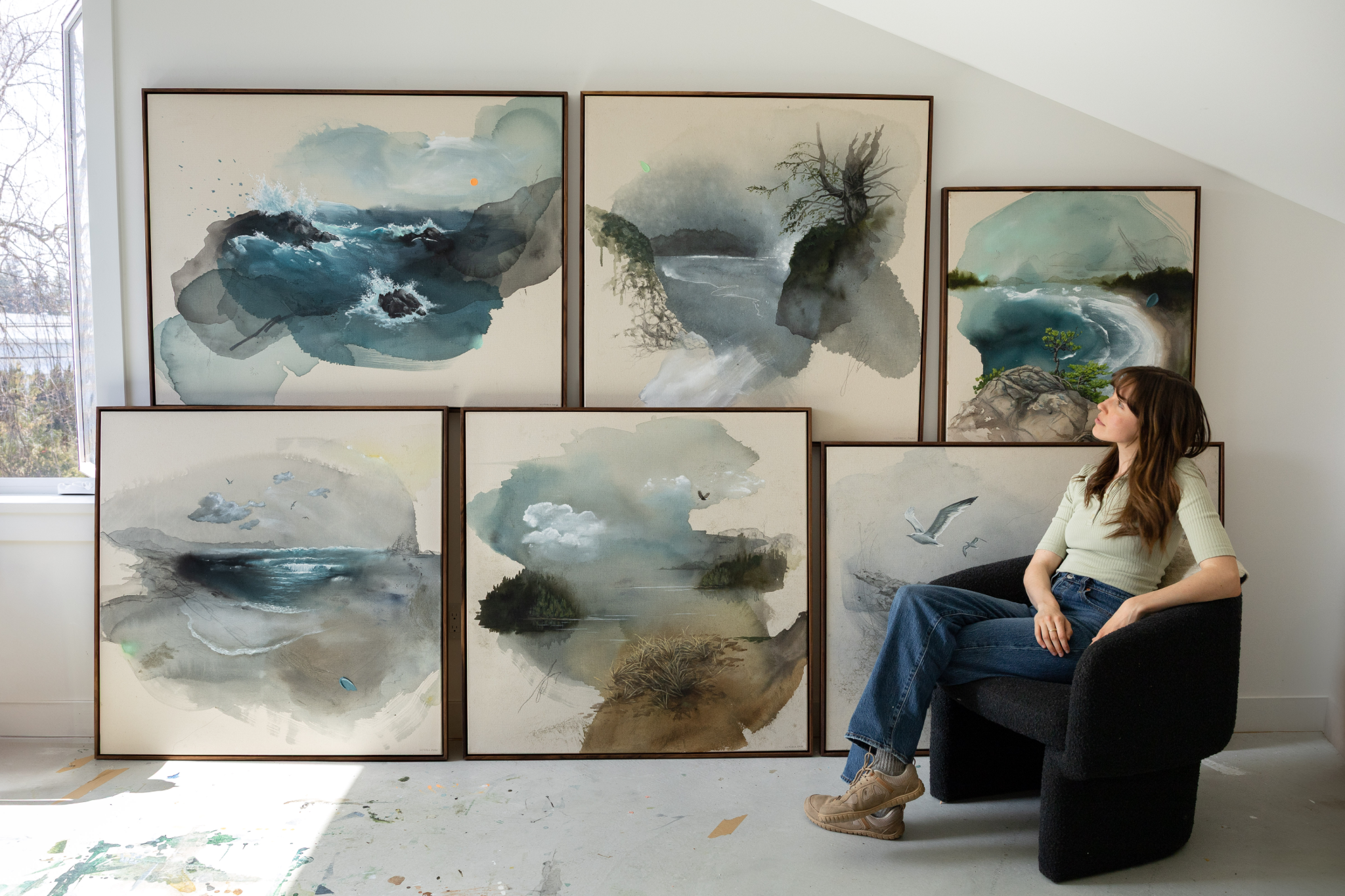 It might not seem like it, but I am both terrified and enthralled by the ocean. While painting this series along the Pacific coastline of Vancouver Island, I was immersed in its untamed beauty. My mind would prefer the safety of a controlled environment, yet the challenge was to embrace the freedom of the wild, along with all the discomfort it brings. That meant hiking canvases up muddy trails, painting in the rain, wind, hail, alongside thunderous waves. Each painting session left all my senses fully alive and buzzing with inspiration.