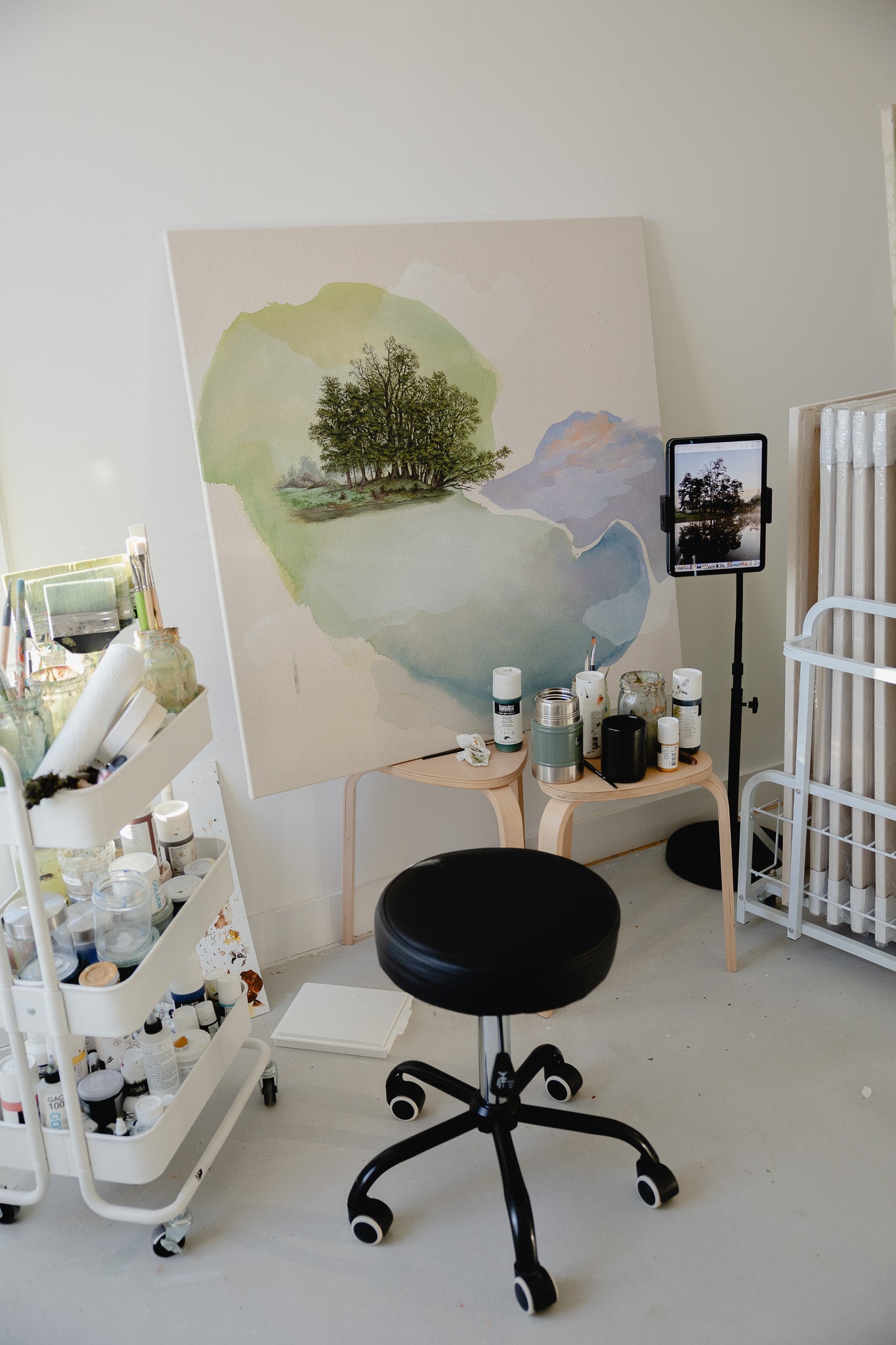 The original first artwork in the 2024 Sanctuary Collection. Acrylic, graphite, gouache, and oil pastel on raw canvas.