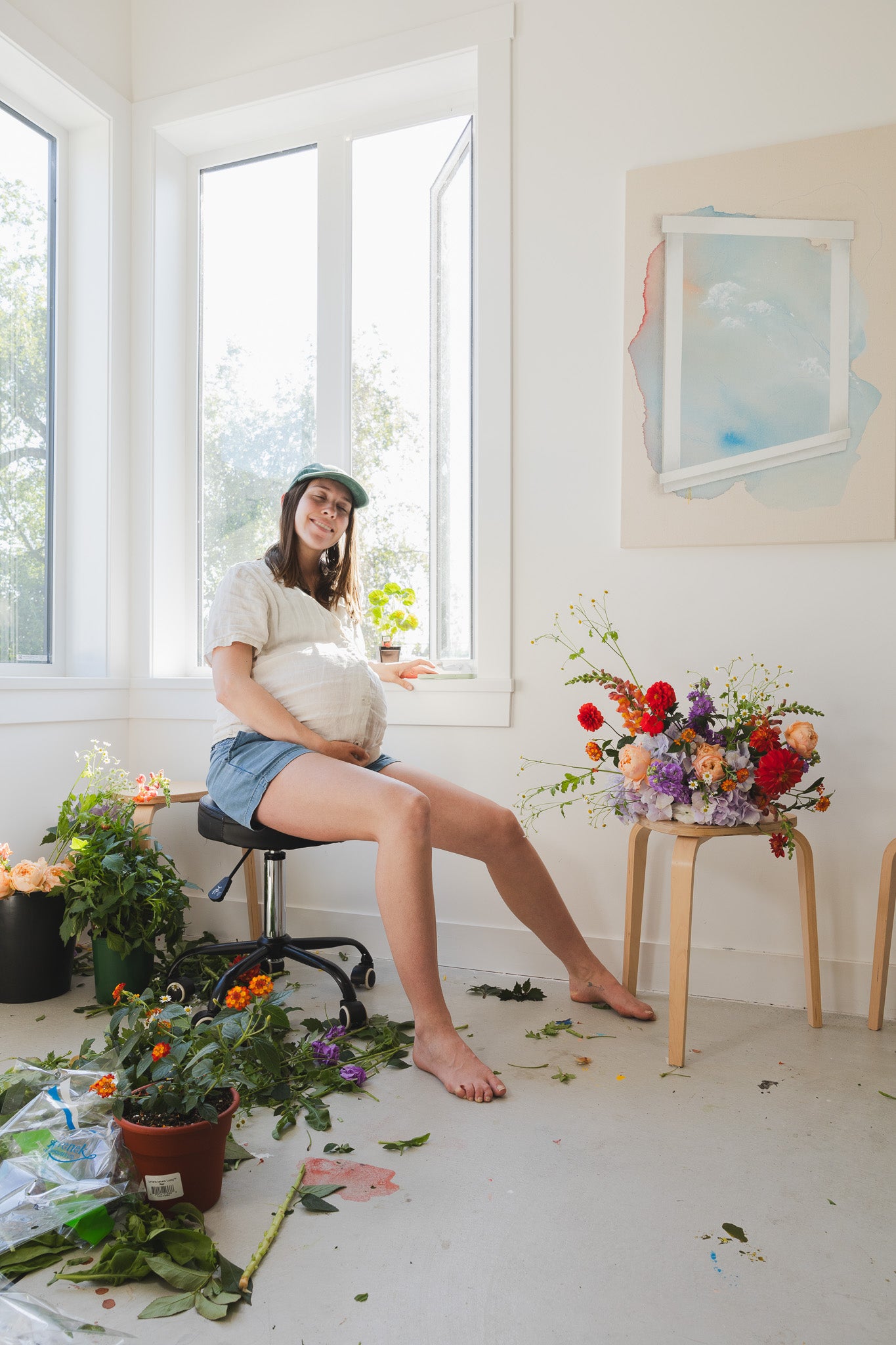 The journey of these paintings was stretching, both literally and figuratively. I had the creative challenge of adding a man-made structure to the pieces that represented the studio windows, all the while growing our second child in my third trimester. Even through the discomfort of pre-labor contractions, I found a deep well of joy while creating these artworks.