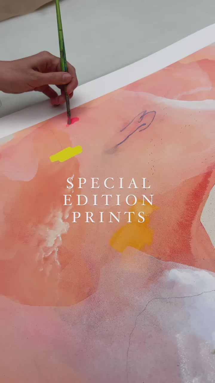 All artworks are printed using UltraChrome archival-grade pigments. A natural, heavyweight textured cotton, free of optical brighteners is used for paper prints. Canvas prints are printed on exhibition grade matte canvas and coated with a water-based varnish, which protects against UV ray damage and cracking. The materials and process ensure long-term, archival stability for both paper and canvas prints.