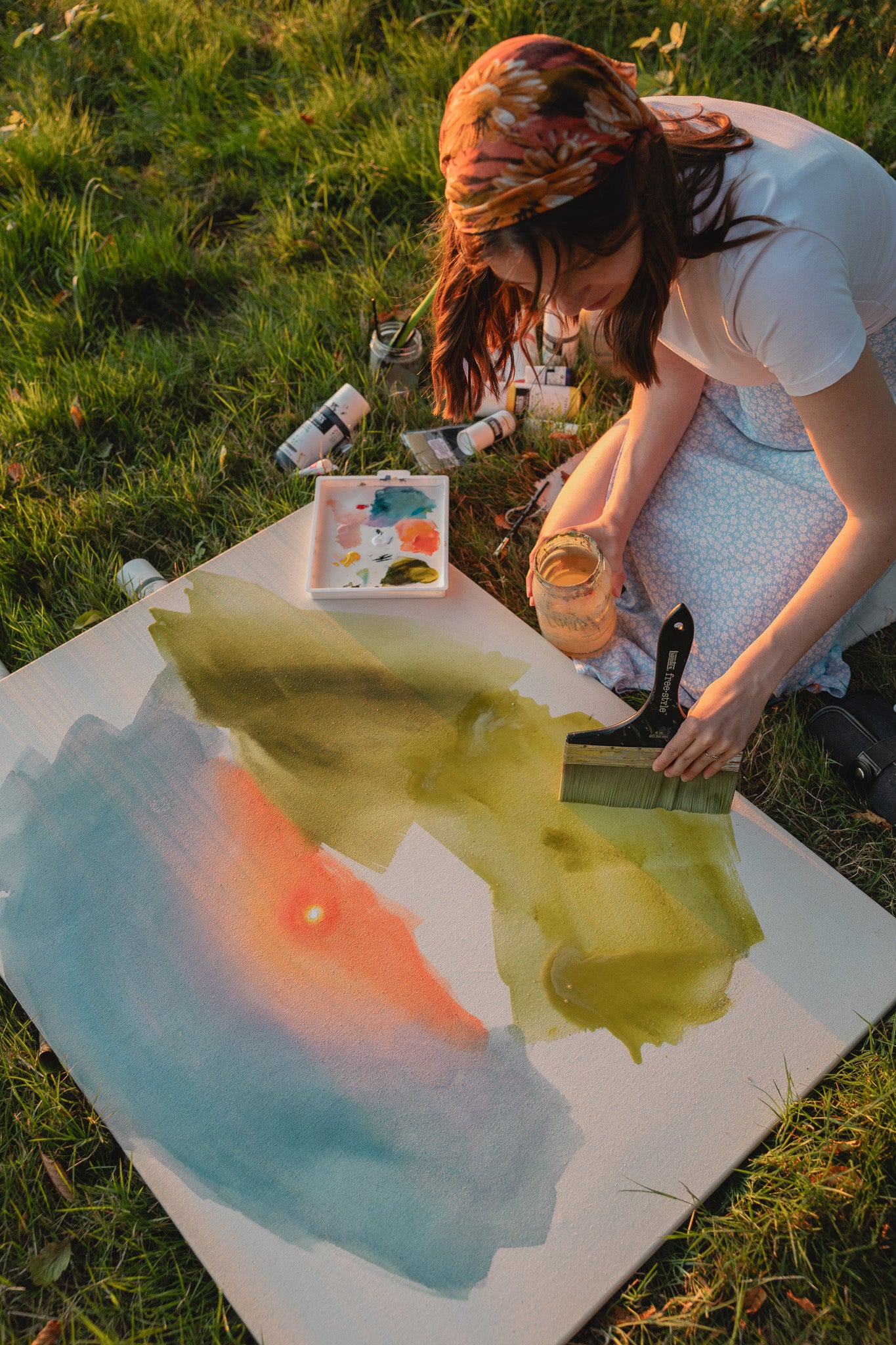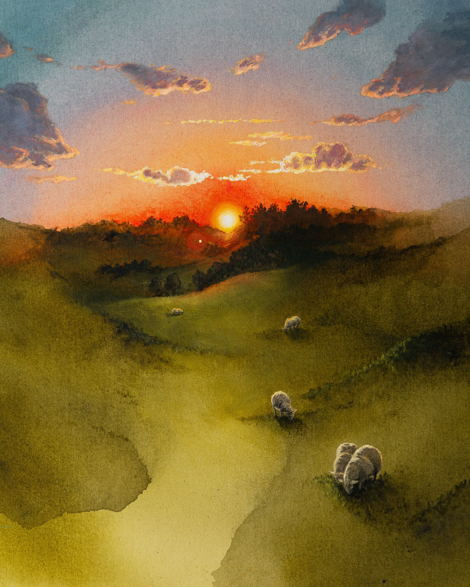 The fifth piece in this collection - Homecoming - portrays the feeling of coming home, painted during sunset in the hills where I grew up.
