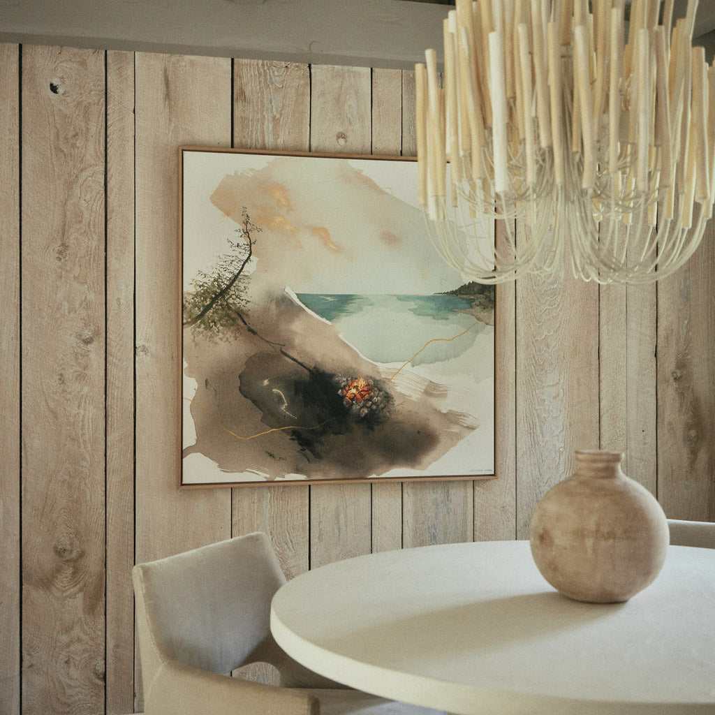 Framed paper prints are protected with a UV-blocking acrylic and are available in all sizes except for 55X55". Framed canvas is stretched over 3/4" bars and installed in custom made floater frames. Available in sizes 30x40" and larger. All frames are made to order.
